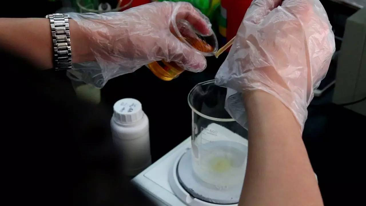 (圖為清華研究員正在調制配方)