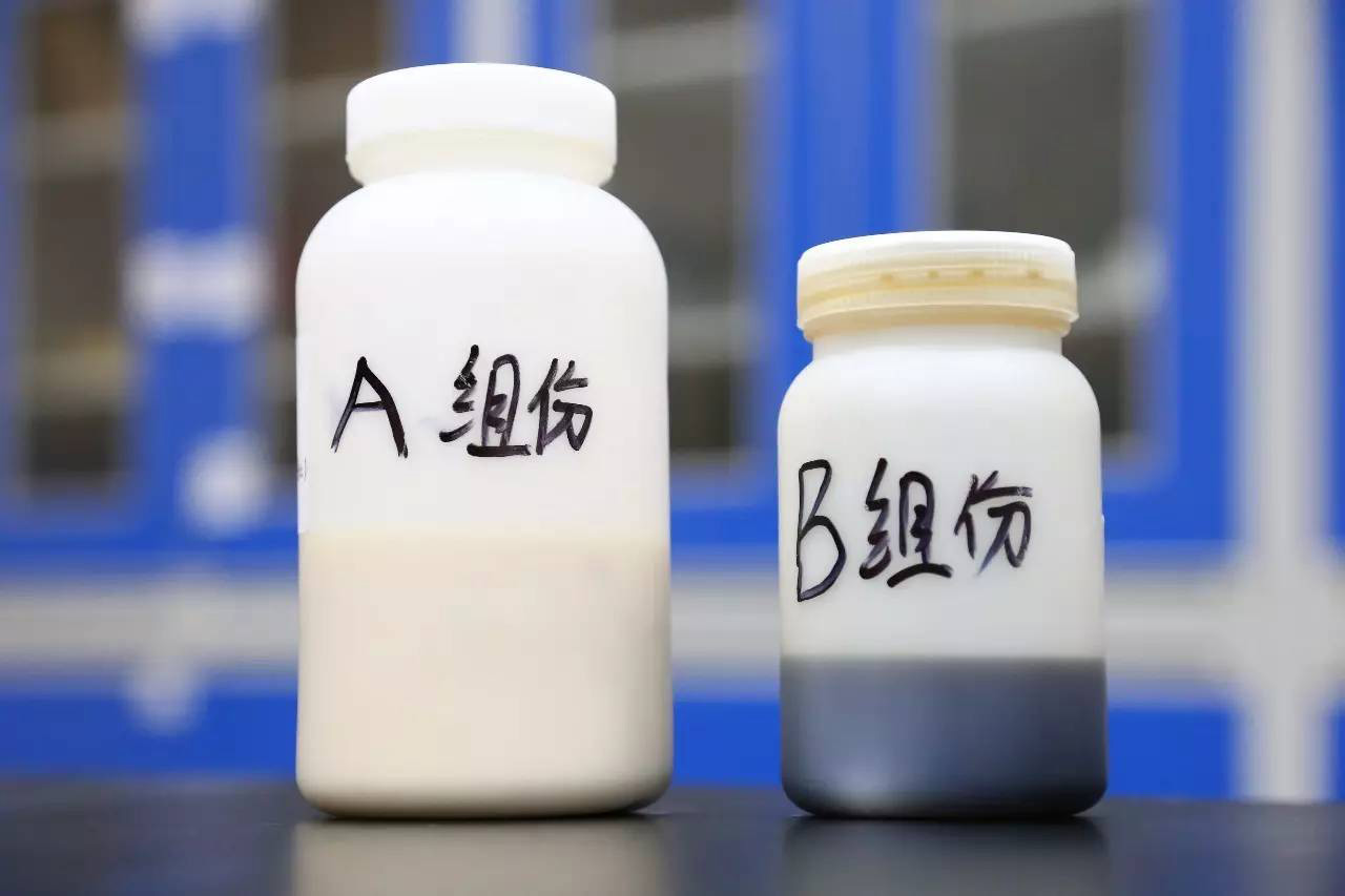 王工按照3:1的比例,將A料和B料分別倒入燒杯中,使用機械攪拌器進行攪拌,制成電子灌封膠。這時可以觀測到氣泡的產生。