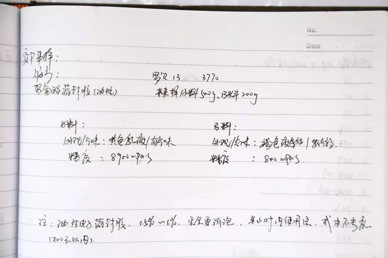羅先生來樣兩瓶,A料為油性聚氨酯,重500g,為黃色乳液,帶有明顯氣味,測得其粘度為8900 mPA·s;B料為固化劑,重200g,為褐色液體,具有輕微氣味,粘度為800 mPa·s。