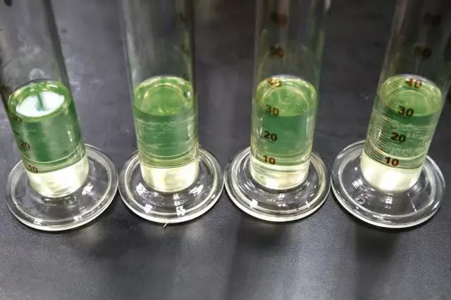 觀測各樣品杯透明度情況,對比各款產品的消泡效果,是否有析出,漂油問題。