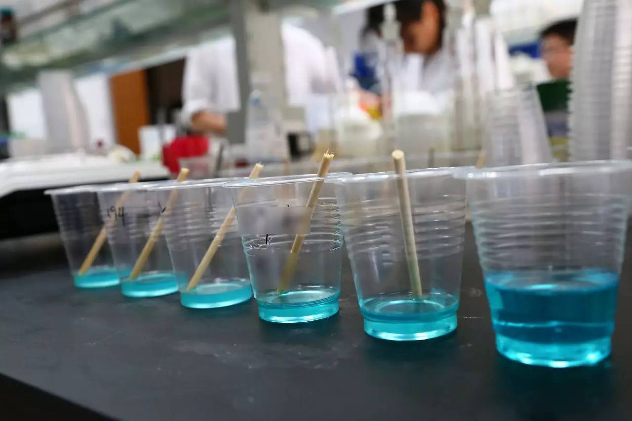 李工首先使用燒杯配制造紙工藝模擬發泡液,然后往5個量筒中分別加入30g模擬發泡液。往1號量筒中滴加0.09g的友商消泡劑,蓋緊瓶蓋,將其作為實驗對照標準。